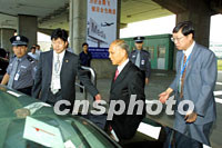 全國政協副主席、著名華商霍英東先生十六日抵達南京,出席第六屆世界華商大會。中新社記者 史利 攝