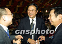 著名中國企業家柳傳志(中)十六日出席在南京國際會展中心舉辦的華商大會首次晚宴。中新社記者 史利 攝