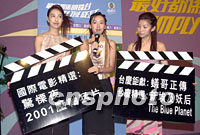 明珠臺應屆港姐17日在香港出席無線電視明珠臺《最好都系明珠臺》新口號記者會,應屆港姐鍾沛枝、楊思琦、朱凱婷(左起)會上極力推介明珠臺將播映的電影系列。中新社圖 鄧慶樂 攝