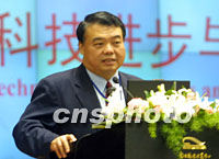 臺灣英業達集團副董事長溫世仁在第六屆世界華商大會十七日下午舉行的《科技進步與經濟發展》專題論壇上,發表“新的外資”專題演講。中新社記者 李剛 攝