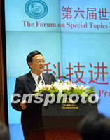 聯(lián)想集團(tuán)董事局主席柳傳志在第六屆世界華商大會(huì)十七日下午舉行的《科技進(jìn)步與經(jīng)濟(jì)發(fā)展》專題論壇上,發(fā)表“中國高科技企業(yè)發(fā)展的四道關(guān)口”的專題演講。中新社記者 李剛 攝