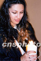 日前,美國各地為世貿中心遇難者祈禱。圖為哥倫比亞裔姑娘戴安娜在紐約皇后區一所教堂秉燭寄托哀思。中新社記者 郭健 攝