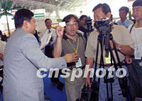 第六屆世界華商大會(huì)中國(guó)經(jīng)濟(jì)論壇十九日在南京國(guó)際會(huì)展中心舉行,由于采訪的記者人數(shù)較多,主辦者只得采取發(fā)號(hào)入內(nèi)采訪的措施,每人拍攝只限三分鐘。中新社記者 史利 攝