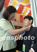 本屆華商大會年齡最小的代表,來自英國十一歲的何明高特意請假隨父母出席大會,并希望有朝一日繼承父業來華投資。中新社記者 鄭萍萍 攝