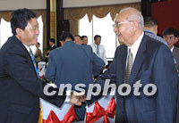全國人大常委會副委員長王光英十九日下午在南京與出席第六屆世界華商大會的嘉賓座談會。中新社記者 鄭萍萍 攝