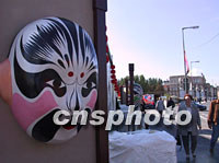 “柏林亞太周·中國主賓國”活動期間,新柏林街頭懸掛中國京劇臉譜,引起路人的濃厚興趣。東西德統一后柏林重泛生機,東西方新老文化交匯,充滿活力。中新社記者 劉莉生 攝