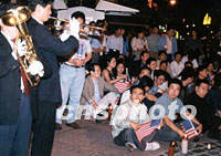 哀樂低回,燭光搖曳。九月十九日晚,以福建僑團(tuán)為主的近三百位華人華僑來到紐約華埠林則徐廣場(chǎng),默默悼念“九一一”死難者。中新社記者 郭健 攝
