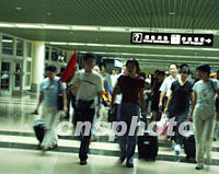 海南黃金周頭三天進島游客逾五萬人次。圖為海口美蘭機場出口處游客人群涌動。中新社圖 王辛莉 攝