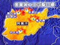 阿富汗當(dāng)?shù)貢r間八日二十時二十八分左右,美英開始對阿富汗進行新一輪打擊,圖為美英新二輪打擊目標(biāo)的示意圖。