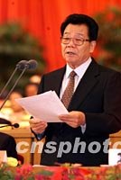 辛亥革命九十周年紀(jì)念大會九日在北京人民大會堂舉行,中共中央政治局常委、全國政協(xié)主席李瑞環(huán)主持會議。中新社記者 毛建軍 攝