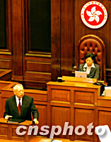 香港特首董建華發表任內最后一份施政報告 2001年10月10日 17:36 ![]() 香港特區行政長官董建華,10月10日在香港立法會發表2001年施政報告。中新社記者 任晨鳴 攝