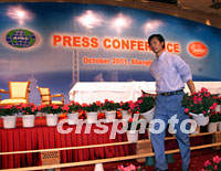 工人在上海的APEC新聞中心發(fā)布廳擺花裝飾,迎接即將開始的亞太經(jīng)合組織高峰會(huì)。APEC新聞中心已準(zhǔn)備就緒,將于十四日正式開始運(yùn)作。中新社記者 毛建軍 攝