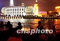 中外游客特意乘坐上海黃浦江游船觀賞十月APEC會場夜景,燈火輝煌的國際會議中心正是高官聚會之地。中新社記者 賈國榮 攝