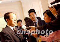 2001年上海APEC非正式高官會主席王光亞,十五日中午在上海國際會議中心接受記者采訪時表示:反恐怖是全世界都要關注的問題。中新社記者 王瑤 攝