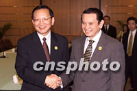 中國外交部長唐家璇十六日在上海國際會議中心會見前來參加亞太經合組織(APEC)會議的菲律賓副總統兼外長金戈納。中新社記者 毛建軍 攝