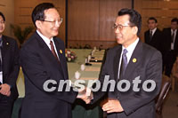 中國外交部長唐家璇十六日在上海國際會議中心會見前來參加亞太經(jīng)合組織(APEC)會議的韓國外交通商部長官韓升洙。中新社記者 毛建軍 攝