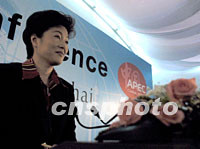 APEC籌委會秘書處發言人章啟月十七日上午在上海國際新聞中心介紹雙部長會議安排時說,今天雙部長會議的早餐會討論反恐怖問題。她同時說,中美關系的主要問題仍然是臺灣問題。中新社圖 劉殊瑾 攝