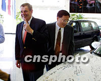 圖文:通用汽車(chē)董事長(zhǎng)乘APEC快車(chē)"回家"記 2001年10月17日 20:57 ![]() 圖為十七日抵達(dá)上海的史密斯在親臨上海通用汽車(chē)公司時(shí)說(shuō),當(dāng)年他第一個(gè)在上海首輛別克汽車(chē)上簽名。中新社記者 潘索菲 攝