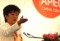 APEC籌委會秘書處發言人章啟月十八日在上海國際新聞中心的早晨發布會上,多次強調中方對各國首腦的保安早有可靠措施。據悉美國總統布什今日飛抵上海。中新社記者 賈國榮 攝