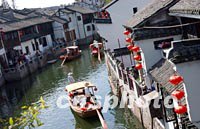 出席APEC雙部長會議的部長夫人們十八日到千年水鄉(xiāng)古鎮(zhèn)朱家角參觀游覽,乘船感受船在水中行,人在畫中游的迷人景色。中新社記者 王瑤 攝