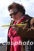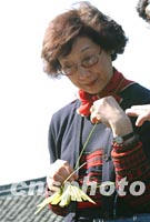 出席APEC雙部長會議的部長夫人們十八日到千年水鄉(xiāng)古鎮(zhèn)朱家角參觀游覽,中國臺北“經濟部長”夫人葉美吟對當?shù)氐牟菥幭X蟈愛不釋手。中新社記者 王瑤 攝