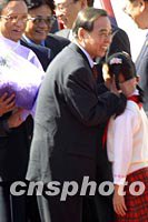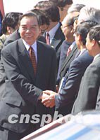 參加APEC領(lǐng)導(dǎo)人非正式會(huì)議越南總理潘文凱(左一)十九日中午到達(dá)上海浦東機(jī)場(chǎng)。中新社圖 劉殊瑾 攝