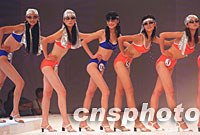 2001中國模特之星大賽日前在廣東中山市舉行,選自中國各省市的59名佳麗參加了角逐。圖為參賽選手進行泳裝展示。中新社圖 東方 攝