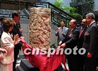墨西哥總統文森特·福克斯與上海市市長徐匡迪十九日在上海博物館為墨西哥瑪雅文明珍品展揭幕。中新社記者 潘索菲 攝