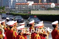 出席APEC第九次領(lǐng)導(dǎo)人非正式會議的各經(jīng)濟體首腦二十日下午來到上海國際會議中心參加盛會,圖為載著領(lǐng)導(dǎo)人的國賓車隊依次駛?cè)霑䦂鐾局小?中新社記者 潘索菲 攝