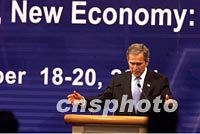 圖:美國總統(tǒng)布什在APEC的CEO峰會演講