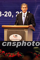 美國總統布什二十日在上海香格里拉飯店舉行的亞太經合組織工商領導人峰會上發表演講。中新社記者 毛建軍 攝