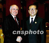 圖:江澤民會(huì)見(jiàn)澳大利亞總理霍華德