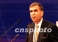 美國在線時代華納公司首席執行官李文二十日在上海舉行的亞太經合組織工商領導人峰會上發表演講,談論“在知識經濟時代媒體的未來”。中新社記者 毛建軍 攝