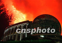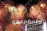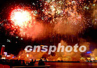 上海APEC峰會之夜焰火沖天,亞太地區首腦和嘉賓聚集國際會議中心大飽眼福。 中新社記者 賈國榮 攝