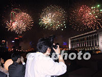 大型景觀焰火表演“今宵如此美麗”于10月20日晚上9時在浦江之濱亮相,五彩繽紛的焰火吸引APEC會議的攝影記者在東方明珠塔下不停地按下快門。中新社圖 肖方 攝