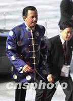 10月21日上午,出席2001年亞太經合組織領導人非正式會議的文萊蘇丹博爾基亞抵達上海科技館。中新社圖