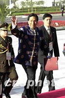 10月21日上午,出席2001年亞太經合組織領導人非正式會議的秘魯總統托萊多抵達上海科技館。中新社圖