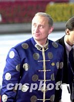 10月21日上午,出席2001年亞太經合組織領導人非正式會議的俄羅斯總統普京抵達上海科技館。中新社圖