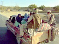 美軍空襲阿富汗以來,每天都有大量阿富汗難民涌往阿邊境難民營,目前在巴基斯坦的阿難民已達三百萬左右。圖為舉家逃難的阿富汗人。