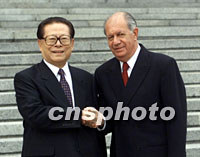 江澤民說,打擊恐怖主義是一項長期艱巨任務 2001年10月23日 21:04 ![]() 國家主席江澤民二十三日在北京歡迎來訪的智利總統拉戈斯。中新社記者 滿會喬 攝