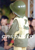 第十一屆SAGA皮草飾邊時裝設計比賽日前在北京舉行,選自北京、上海、天津、杭州以及廣州的13所中國知名服裝設計院校的學生參加了比賽。圖為時裝秀上兒童展示童子軍裝 。中新社記者 錢興強 攝
