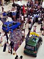 隨著我國加入世界貿易組織的臨近,以及國家一系列鼓勵汽車消費政策的出臺,汽車消費,特別是家庭汽車消費將成為一個巨大的市場。不少國際,國內汽車廠家紛紛進入全國聞名的商家必爭之地--南京,打起了汽車擂臺賽,款式新,價格適中的經濟型轎車越來越受到市民親睞。有關專家預測,不出三年,全國將掀起私人購車熱潮。中新社傳真 林敬東 攝