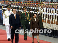 國(guó)家主席江澤民三十日在北京歡迎菲律賓總統(tǒng)阿羅約訪華。中新社記者 滿會(huì)喬 攝