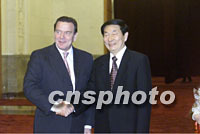 ![]() 國務院總理朱镕基與德國總理施羅德三十一日在北京共同會見記者并回答記者提問。中新社記者 滿會喬 攝