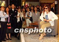 前港姐李嘉慧30日在香港利園商場為Paul Smith 2001秋冬男女服飾展演會(huì),演繹今季最新服飾系列。中新社圖 洪少葵 攝