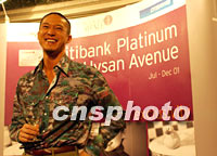 香港著名模特陳子聰30日在利園商場在一家銀行舉辦的推廣活動(dòng)上,演繹名牌服飾Paul Smith 2001秋冬系列。中新社圖 洪少葵 攝