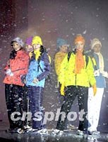 廣州康威集團近日在花園酒店舉行一場運動服裝展示會,向人們演示了今年流行的冬季運動服。中新社圖 梁永強 攝