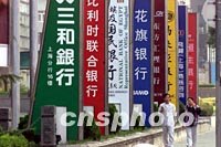 一對晨練的上海市民走過浦東街頭高大的銀行廣告招牌。中國加入世界貿易組織在即,世界著名金融機構紛紛瞄準中國市場。中新社記者 毛建軍 攝