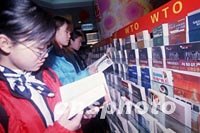 北京王府井新華書店日前增設有關WTO的書籍專柜,每天都吸引許多人前來翻閱和購買。中國加入世界貿易組織,成為目前中國百姓最關心的事情。中新社記者 張勤 攝