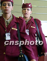 世界貿易組織第四屆部長級會議即將在卡塔爾多哈召開,卡塔爾為此開通了18條通往世界各地的航線為會議來賓服務。圖為卡塔爾航空公司的空姐又要匆匆踏上航程。中新社記者 錢興強 攝